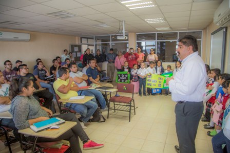 Los pequeños visitaron el ITSCC a fin de llevar a cabo una presentación sobre el cuidado del medio ambiente a estudiantes del tecnológico, quienes atentos escucharon la información que los niños les brindaron a lo largo de una hora. De forma posterior, se les dio un recorrido por todo el instituto.